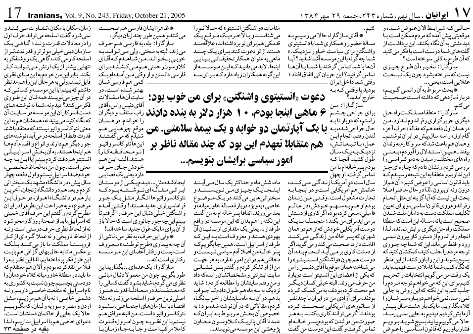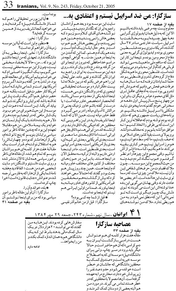 روزنامه ايرانيان، سال نهم، شماره 243، جمعه 29 مهر 1384 عکسهای مصاحبه